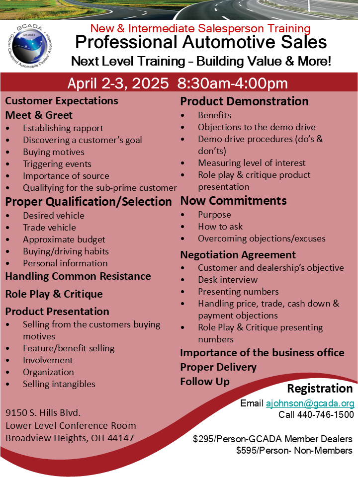 Professional Automotive Sales - Next Level Training - Building Value and More!