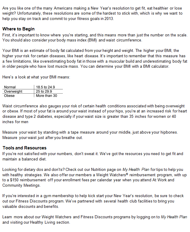 Resources for Healthy Living from Medical Mutual January 22, 2013