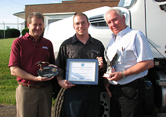 Craig A. Young, president and CEO of Young Truck Sales in Canton, Ohio; Shaun Mosiychuck, parts employee;and Bob Young, dealership vice president, (l-r) receive an award for supporting active military employees.